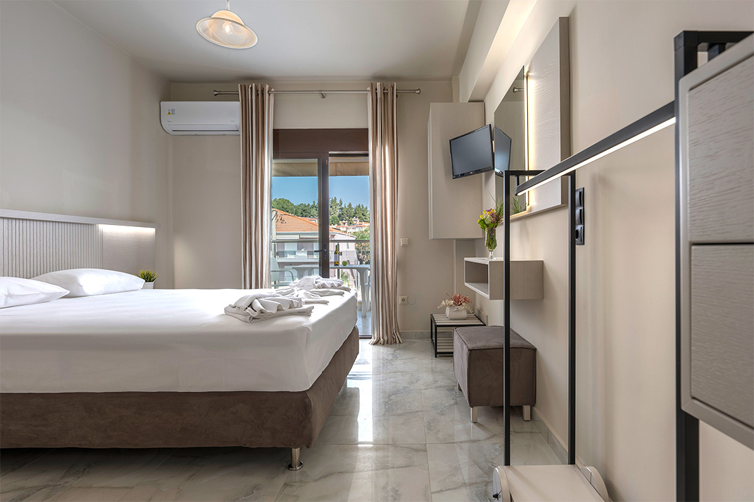 Standard Rooms can accommodate up to 2 persons and they are located both on the ground floor and on upper floors. They have a double bed and their bathrooms are equipped with bathtubs.
